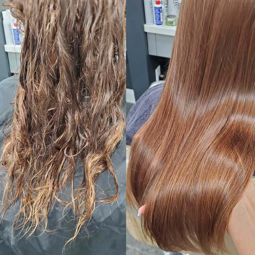 Not unless you want it to. Your stylist will seal in the treatment with a pass of a 450-degree flat iron, and the more your stylist flat irons, the straighter your hair will be. If you like to wear your hair curly, but just want to tame your frizz, this will help make your hair more manageable. Just be sure to tell your stylist exactly what you want, and they can tailor the treatment to either preserve the texture of your hair, or make it smoother. The overall goal is to make your strands less of a burden to work with, but keep in mind that if you have naturally curly hair, it won’t air dry to a pin-straight texture. You’ll still have voluminous body with waves if you air dry it, but if it normally takes you 30 minutes with a blow dryer, this can help you cut down the time to just 15 minutes.